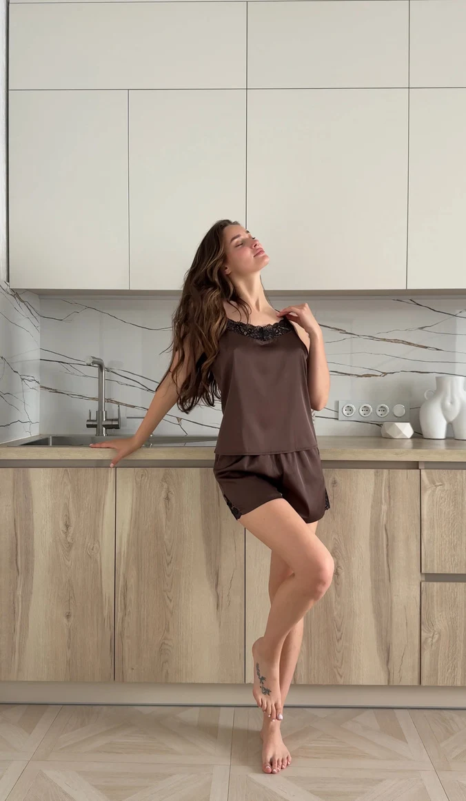 100% натуральний шовк, щільність 19 momme. М’який блиск, прохолодний на дотик.
